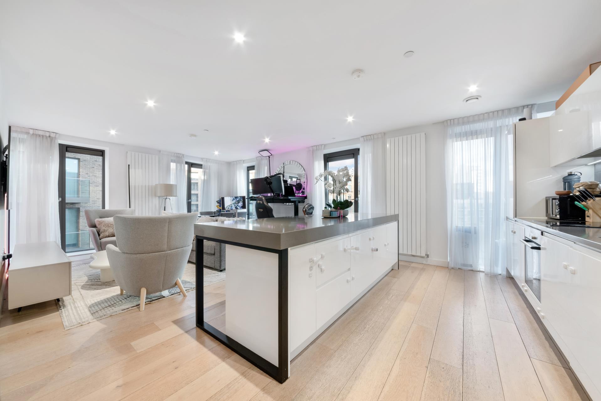 Alongside the traditional one and two-bedroom homes, Royal Wharf offers three-bedroom properties for less than the same size property in neighbouring E14. Most of the three-bedroom homes feature stunning river views, stretching down the Thames to Canary Wharf and the City.