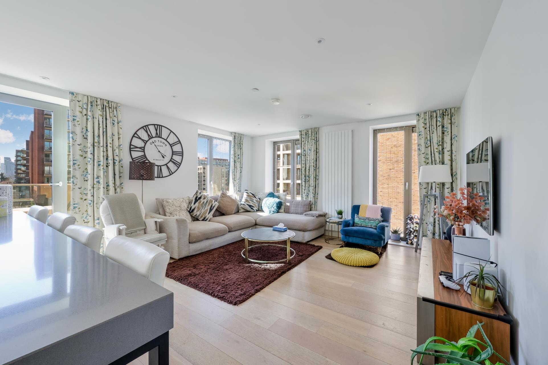Alongside the traditional one and two-bedroom homes, Royal Wharf offers three-bedroom properties for less than the same size property in neighbouring E14. Most of the three-bedroom homes feature stunning river views, stretching down the Thames to Canary Wharf and the City.