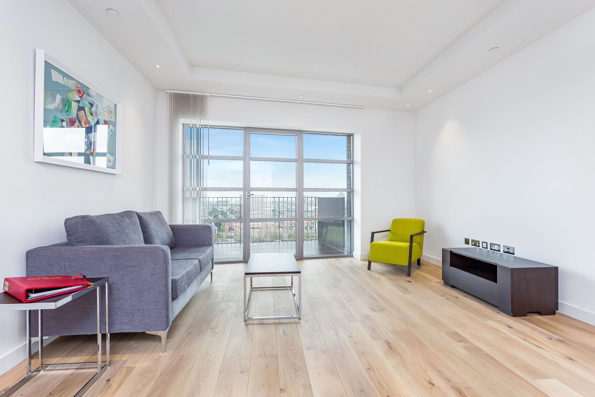 2 bedroom apartment at London City Island. The apartment offers stunning views of Canary Wharf and the city. A spacious design includes an open plan kitchen with high-spec brand appliances, bathrooms using pristine tiling in a black, aquatic-green and white colour scheme, built in wardrobes and European oak engineered floors. London City Island has a gym, concierge and its iconic outdoor swimming poll. Parking is included with the property.